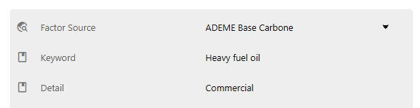 When using connected emission factors (e.g. selecting manually from the Factor Library), the Keyword and Detail fields are no longer editable text fields. Instead, they automatically display the values from the selected emission factor. This ensures that when a factor is changed, the associated fields are updated accordingly and no longer risk becoming outdated or inconsistent.