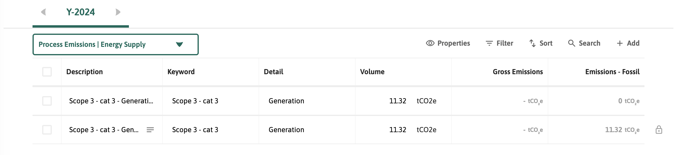 You will need to choose a scope 1 or scope 2 activity category for the new line as you can't input energy supply data directly, another category is used as a proxy. Just pick your category, input the total emissions in the volume column, and the energy supply data will be automatically created.