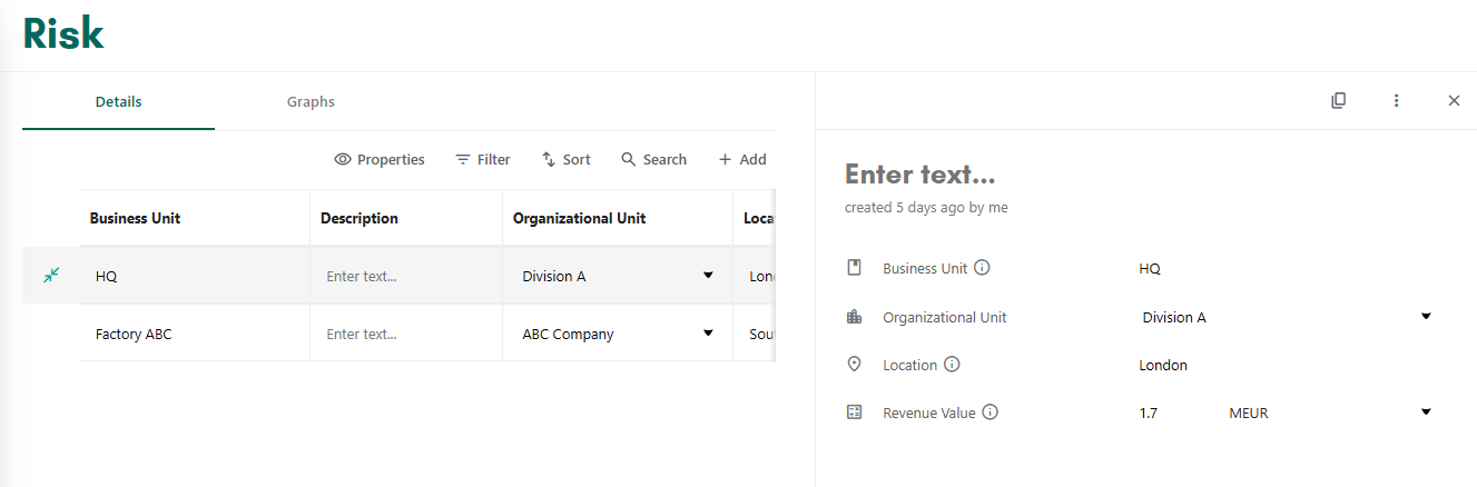Our new Risk feature enables you to calculate climate risks for different business units, both physical and transition risks. The calculation uses data from your inventory together with your input of a location and revenue value. Each company account can use up to two business units in the Risk feature at no additional cost. Additional business units are available as a paid option and can be enabled for the company account in Consultancy Settings.