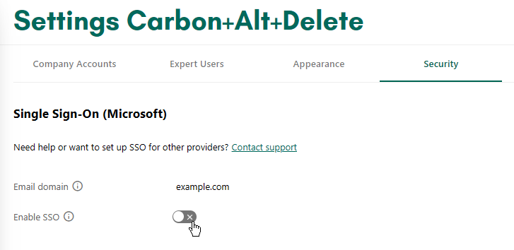 Carbon+Alt+Delete supports Single Sign-On for Microsoft users using Entra. With this enabled, users of your defined domain will be able to sign in using their Microsoft credentials.